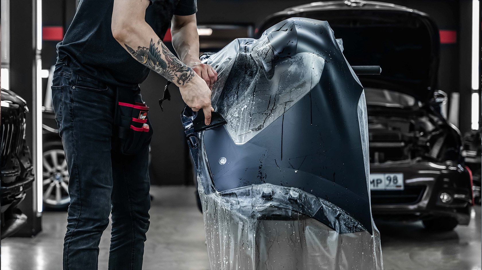 3. Оклейка передней части полиуретановой пленкой Spectroll
